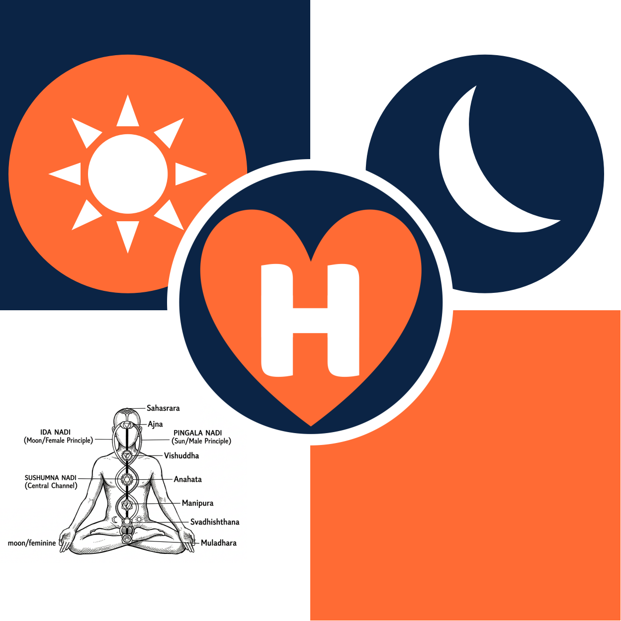 - The Moon: Representing Ida, the lunar and feminine principle. This is for your inward, reflective passions like reading, meditation, or art.